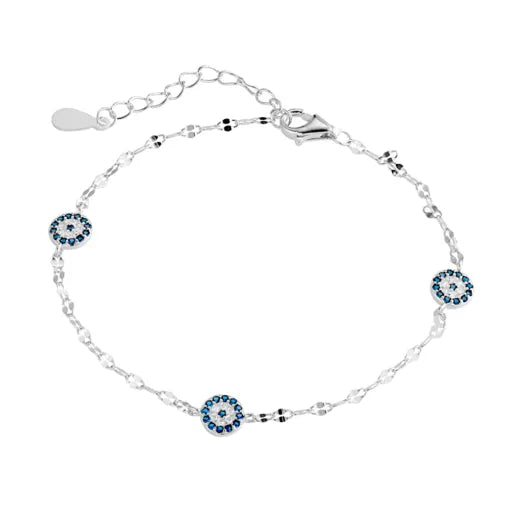 Sterling Silver Fine Fancy Chain Bracelet With Micro Pave Eye Pendant
