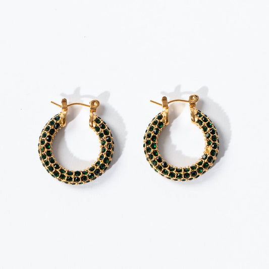 Deep Emerald coloured gems that glitter seductively, set in permanent waterproof gold. Gold huggies with...