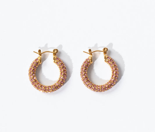 Blush coloured champagne sparkle set in permanent waterproof gold. Divine! Gold huggies with multiple reflective...
