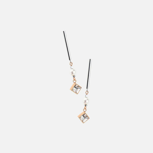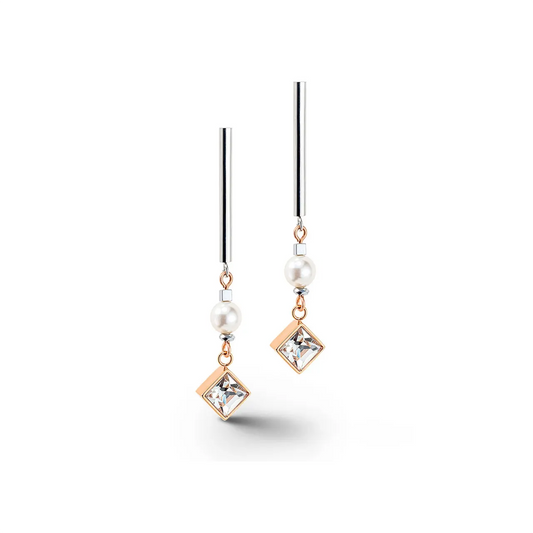Coeur De Lion Layered Square Crystal Rose Gold, White & Pearl Earrings