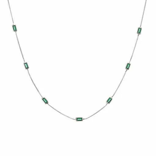 SS Fine Box Chain Necklace Multi Baguette Set Emerald CZ 40+5cm