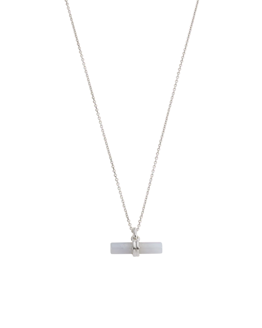 This unique take on the T-Bar Necklace style introduces a calming Blue Lace Agate stone,...