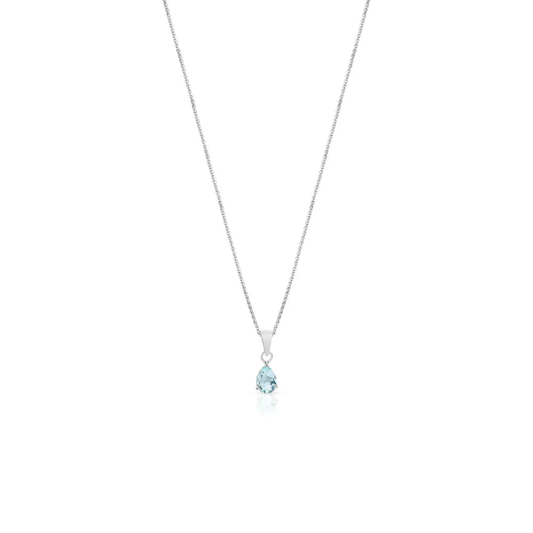 Sterling Silver Blue Topaz Pear Pendant Necklace