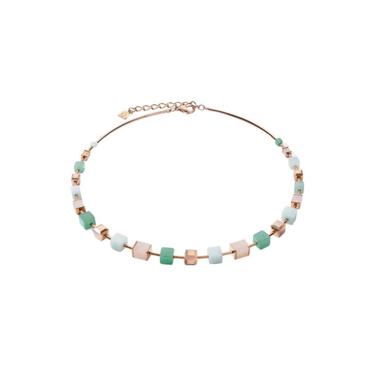 Geo Cube Soft Pink & Green Aventurine Necklace