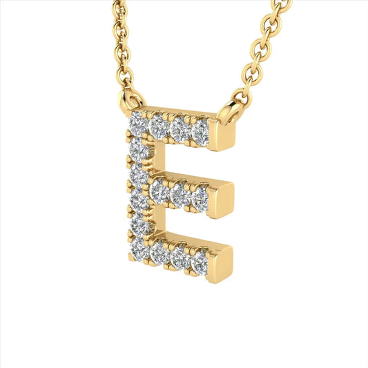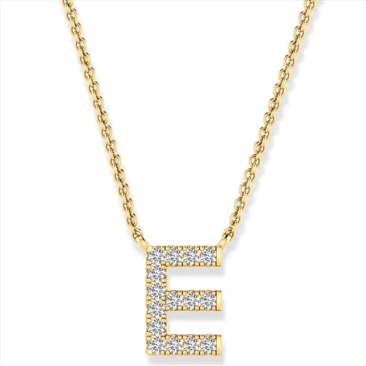 Diamond Set "E" Initial Necklace in 9 carat Yellow Gold