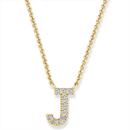 Diamond Set "J" Initial Necklace in 9 carat Yellow Gold