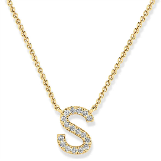 Diamond Set "S" Initial Necklace in 9 carat Yellow Gold