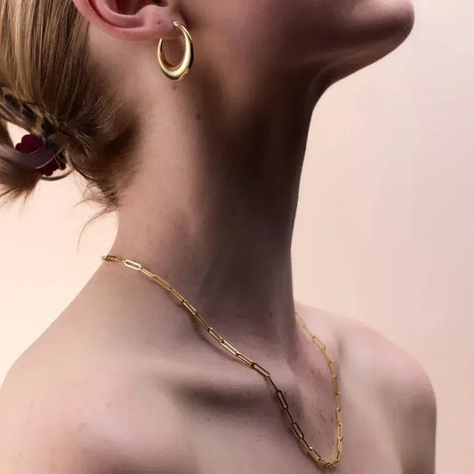 Elegant Oblong Link Chain Necklace in Sterling Silver or Gold