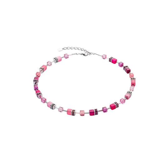 CL4905/10-0839 - NATURAL SELECTION- Necklace geo-cube st/st w/pink aventurine/howlite/rose quartz/rock crystals/synthetic tigers eye, rhinestone rondelles...