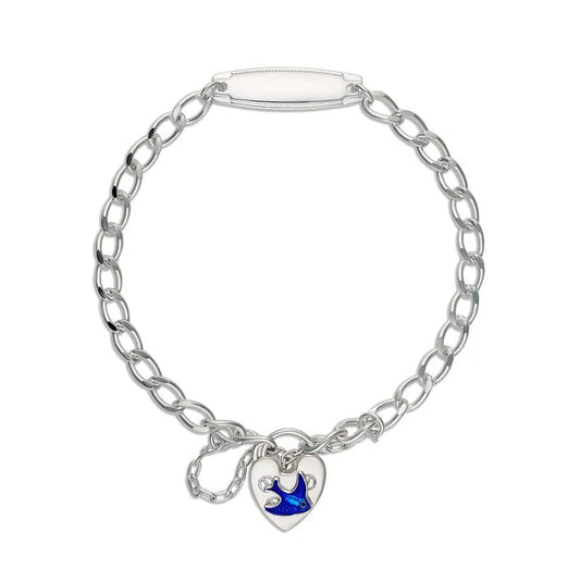 Brooklyn Bluebird Diamond Cut Round Curb Bracelet with ID Silver