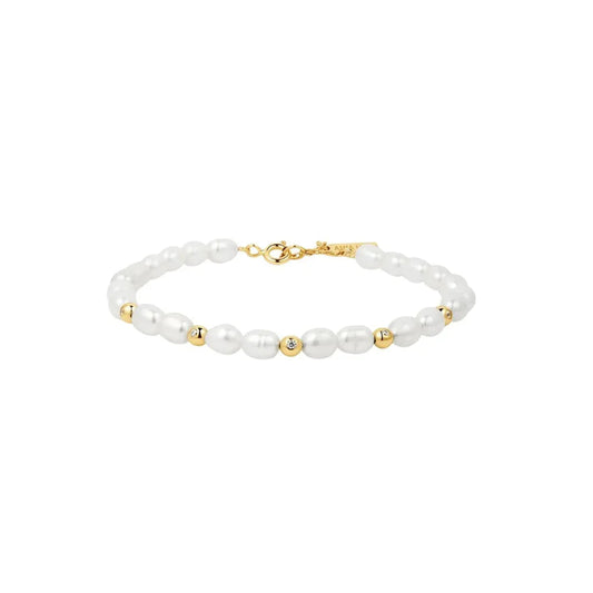 Ania Haie Gold Freshwater Pearl and White Cubic Zirconia Bezel Set Bracelet