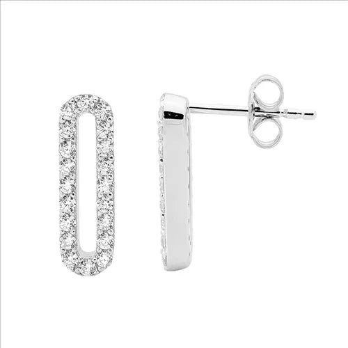 Ellani Sterling Silver Oval Stud Earring with Cubic Zirconia