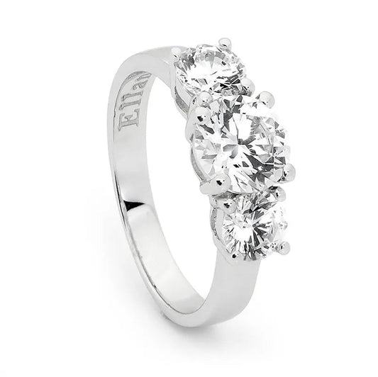 Ellani Trilogy Round Cubic Zirconia Claw Set Sterling Silver Ring