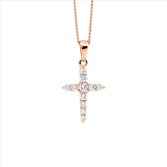 Ellani Rose Gold Plated Cross Pendant - Sterling Silver Cubic Zirconia
