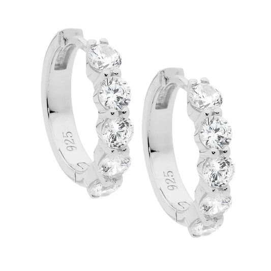 Ellani Sterling Silver 3 x Cubic Zirconia Hoop Earrings