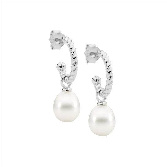 Ellani 13mm Twist Hoop Earrings with Freshwater Pearl Drop in Sterling Silver