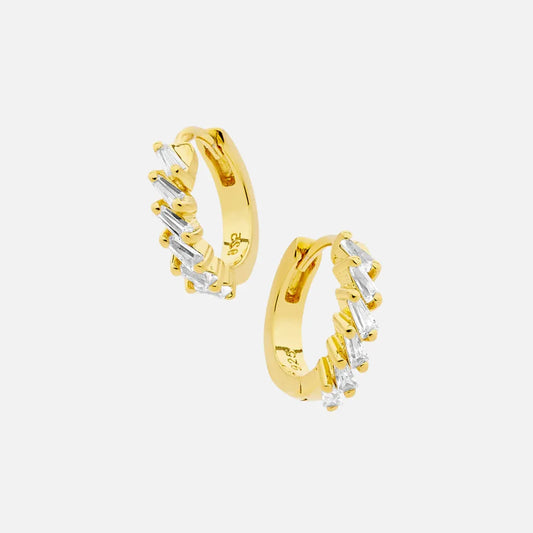 Ellani Sterling SIlver Yellow Gold Plated, Cubic Zirconia Baguette Drop Hoop Earrings