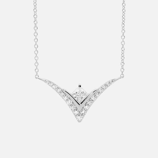 Ellani Princess Cut Cubic Zirconia Wishbone Necklace in Sterling Silver