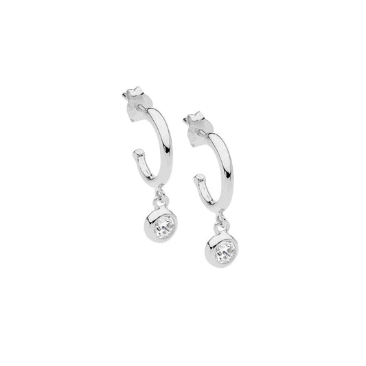 Ellani Sterling Silver 13mm Hoop Earrings with Drop