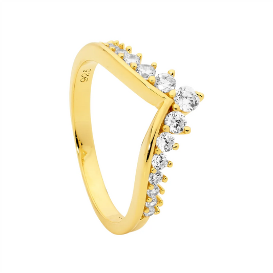 Ellani SS Plain V Ring W/ Gradual Wh CZ