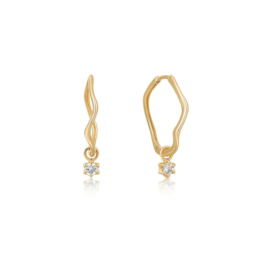 Ania Haie 14kt Gold White Sapphire Drop Mini Wave Hoop Earrings