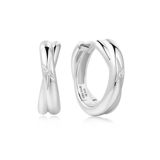 Ania Haie Silver Pavé Double Huggie Hoop Earrings