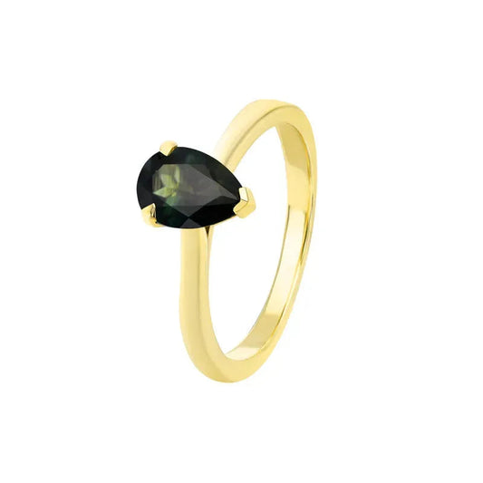 Beautiful and luxurious, Maira showcases a striking pear, teal Australian sapphire, intricately placed on a...