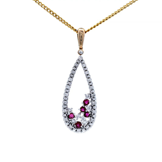 9 Carat Yellow Gold Rhodium Plated Top Ruby And Diamond Pendant Total Diamond Weight: 0.20...