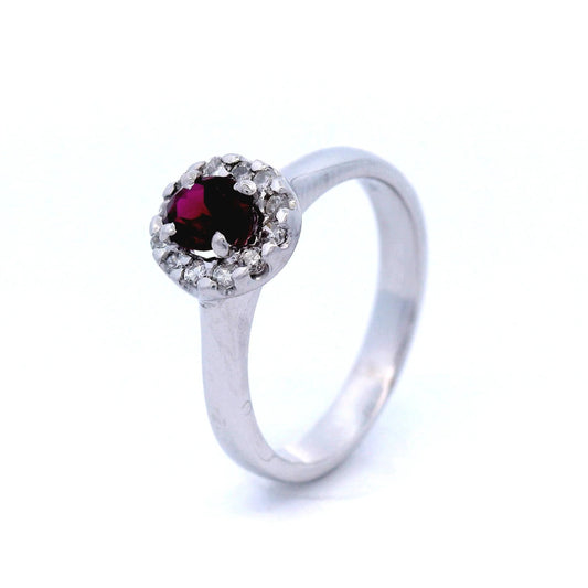 Natural Oval Ruby in White Gold with Round Brilliant Cut Halo Diamond