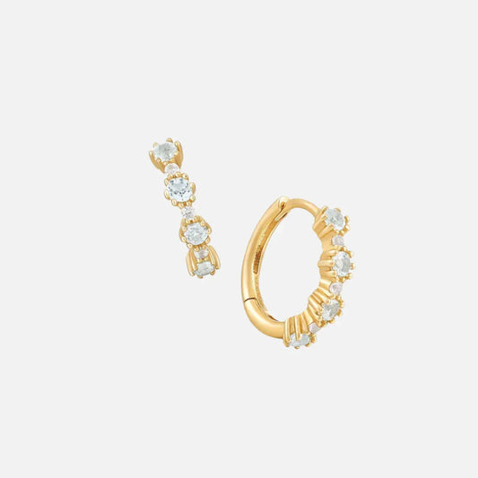 Ania Haie 14kt Gold White Sapphire and Blue Topaz Huggie Hoop Earrings