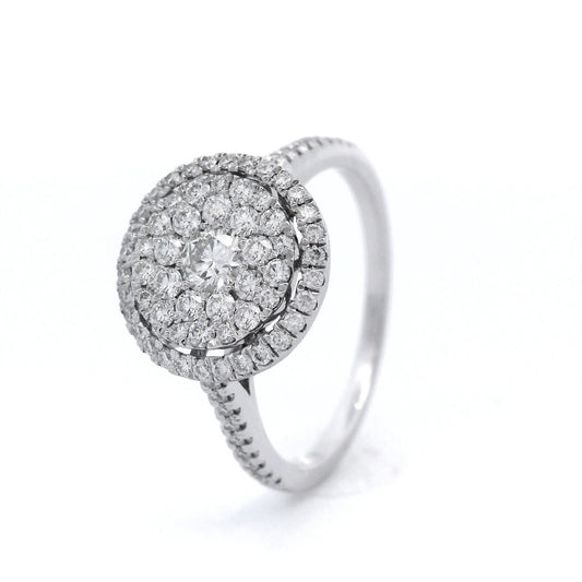 Round Halo Diamond Ring set in 18 Carat White Gold