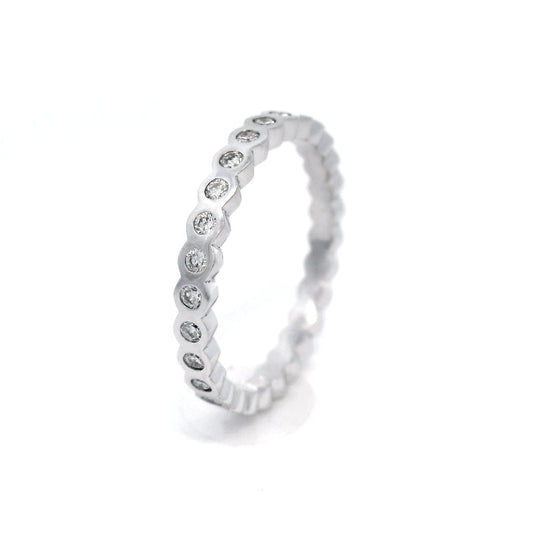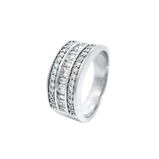 9ct WG RUB SET Dia RING. DiaS FULL SHANK SZ M