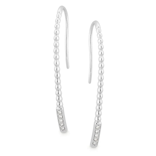 Diamond Bead Set Shepherd Hook Earring in 9 Carat White Gold