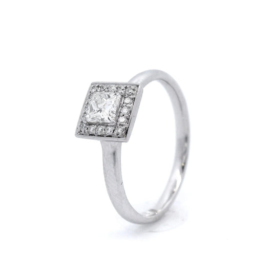 18ct White Gold Diamond Claw Bead Set Halo Engagement Ring