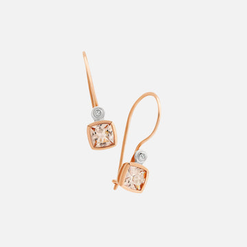 9ct Rose Gold Cushion Set Morganite and Diamond Shepphard Hook Earrings 2x Diamonds = 0.01....
