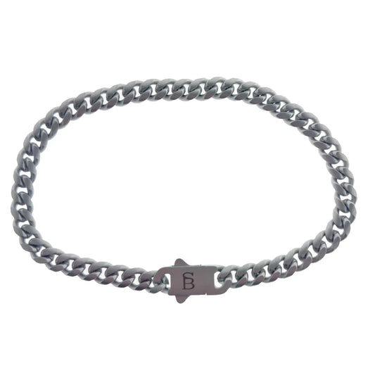 Svelte Stephen - Matte Silver- Cuban Link Stainless Steel Bracelet - Medium