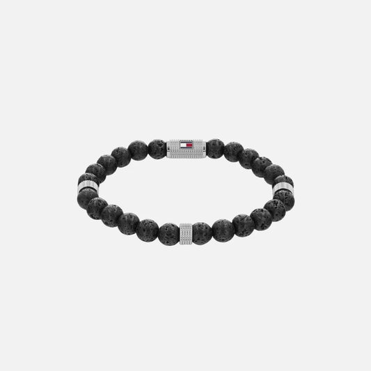 Tommy Hilfiger Jewellery Stainless Steel & Black Lava Bead & Black Elastic Rope Men's Stone Bracelet