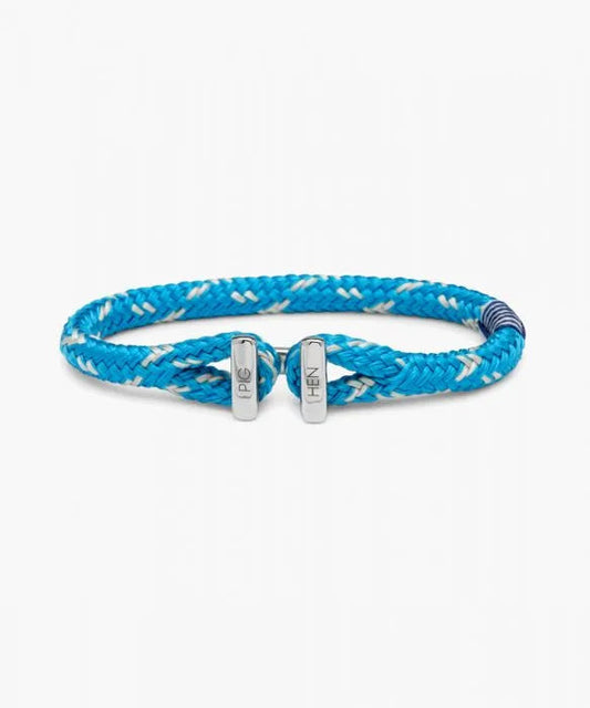 Pig & Hen 'Icy Ike' Light Blue and Ivory Rope Bracelet with Silver I-Shackle