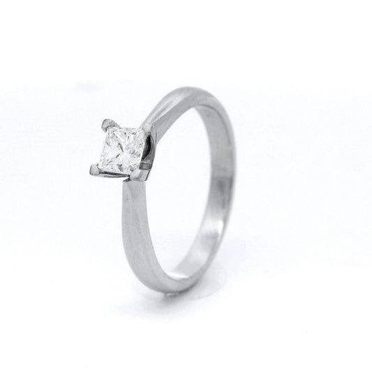 4 Claw Princess Cut Diamond Ring Set in White Gold
