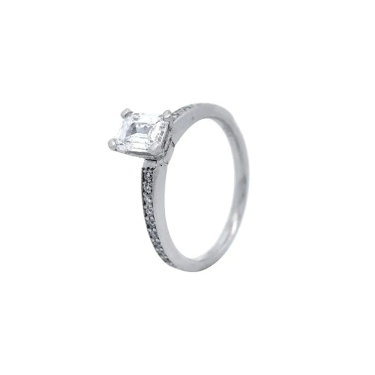 Emerald Cut Diamond with Shoulder Set Diamond in White Gold