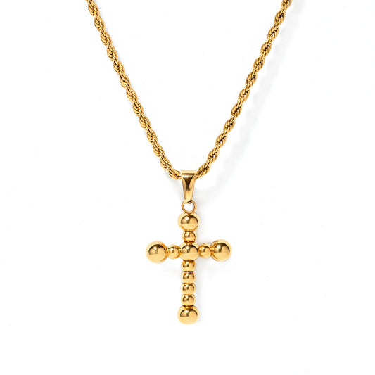 This sleek and bold Popcorn Chain Cross Pendant Necklace is crafted from high-quality stainless steel,...
