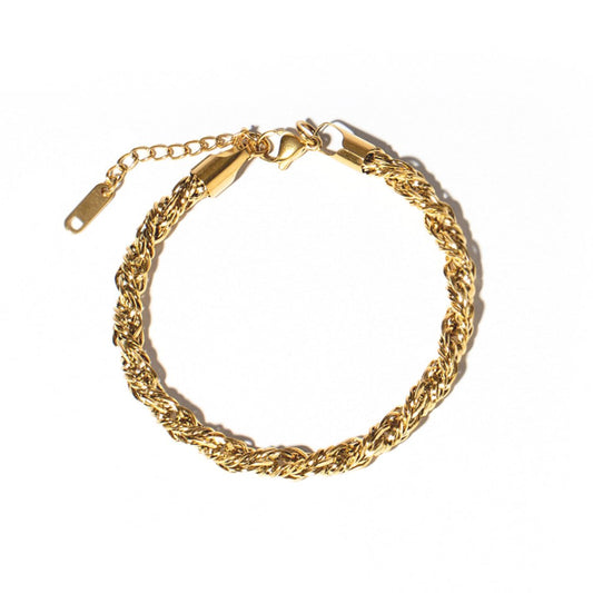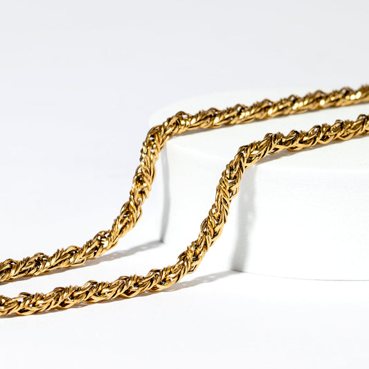 This beautiful design features multiple gold chains twisted together to create a texturally intriguing and...