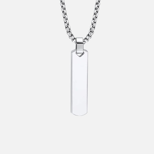 This sleek and modern bar pendant necklace is crafted from high-quality stainless steel, offering durability...