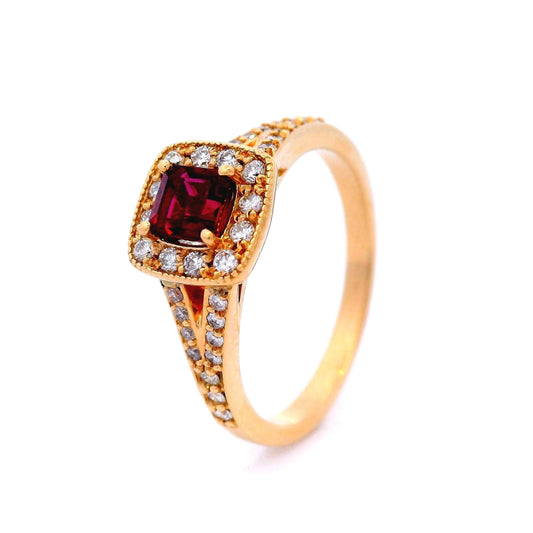 Natural Oval Ruby Set in Yellow Gold with Diamonds