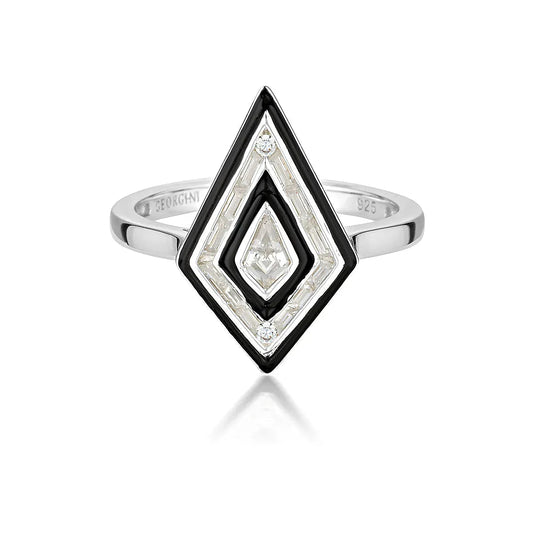 REFLECTON ART DECO RING SILVER & BLACK ENAMEL