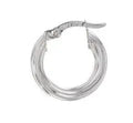 Small 3mm Ttwist Hoop Earrings in 9 Carat White Gold, Silver Filled.