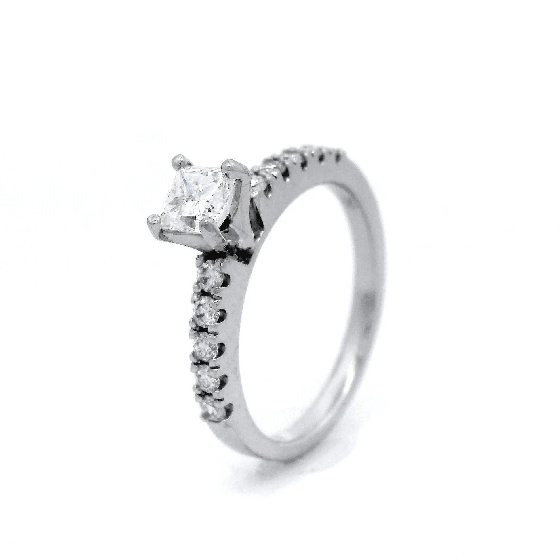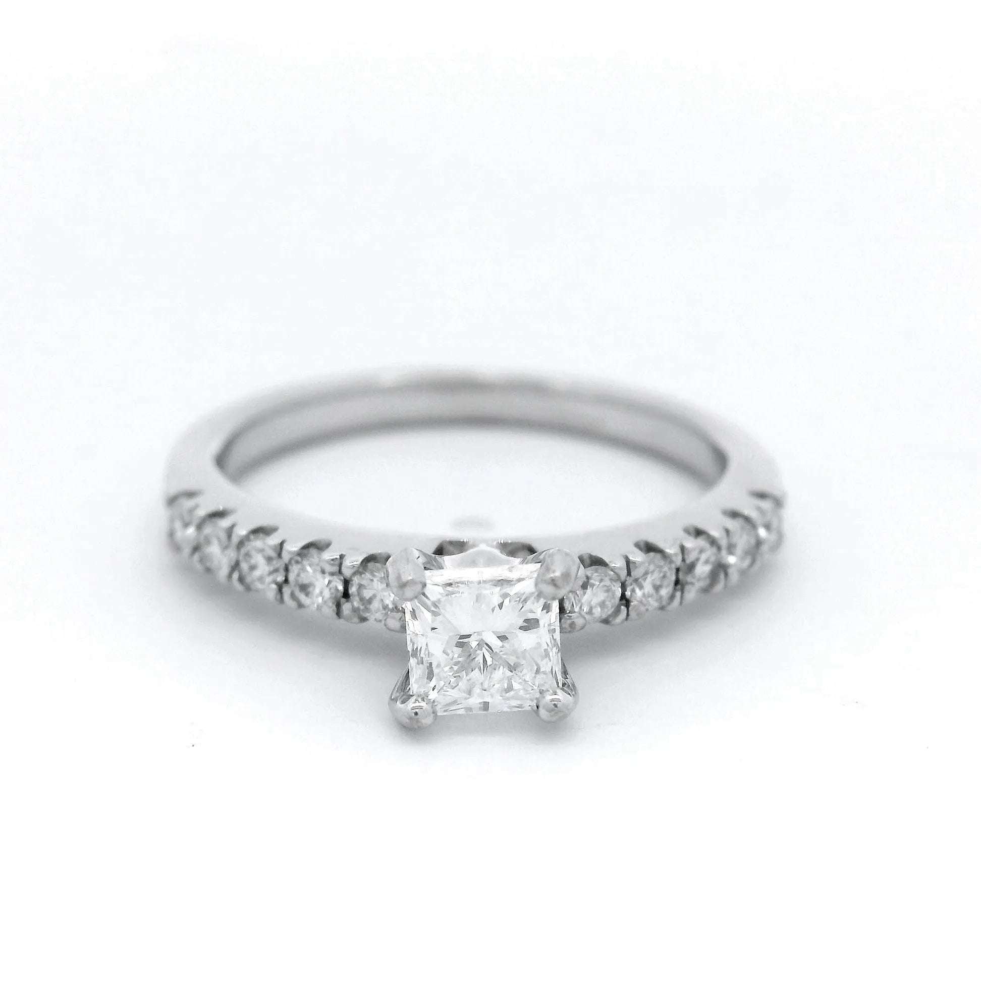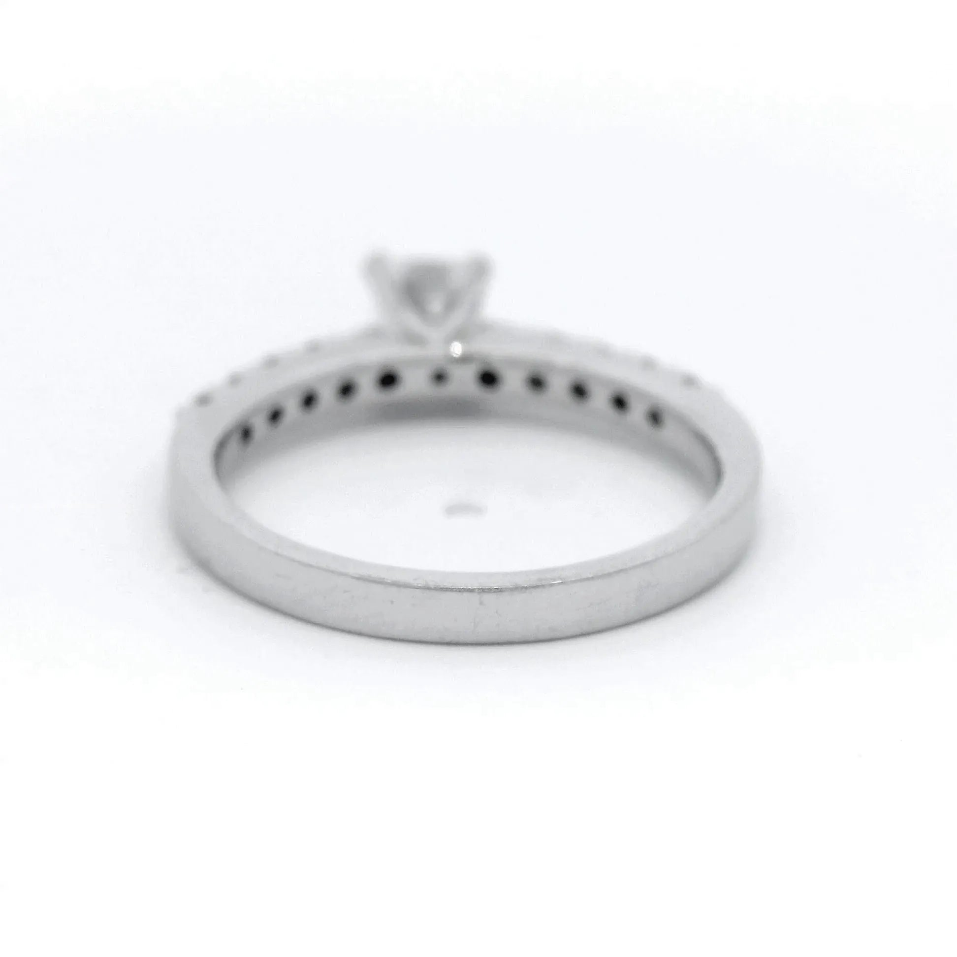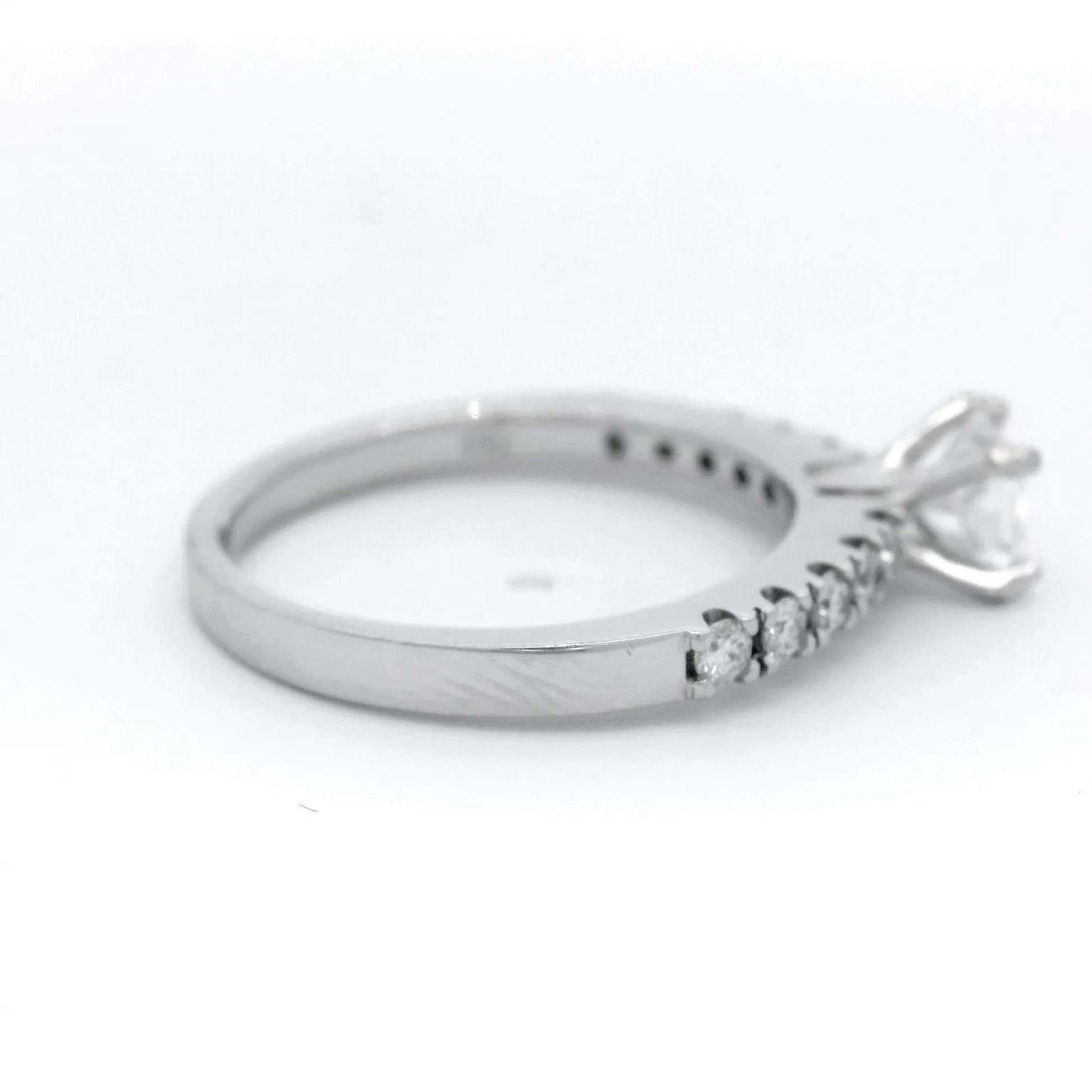 Pop the question with this beautiful Diamond Claw and Bead Set Shoulder Stone Engagement Ring in 18ct White Gold.