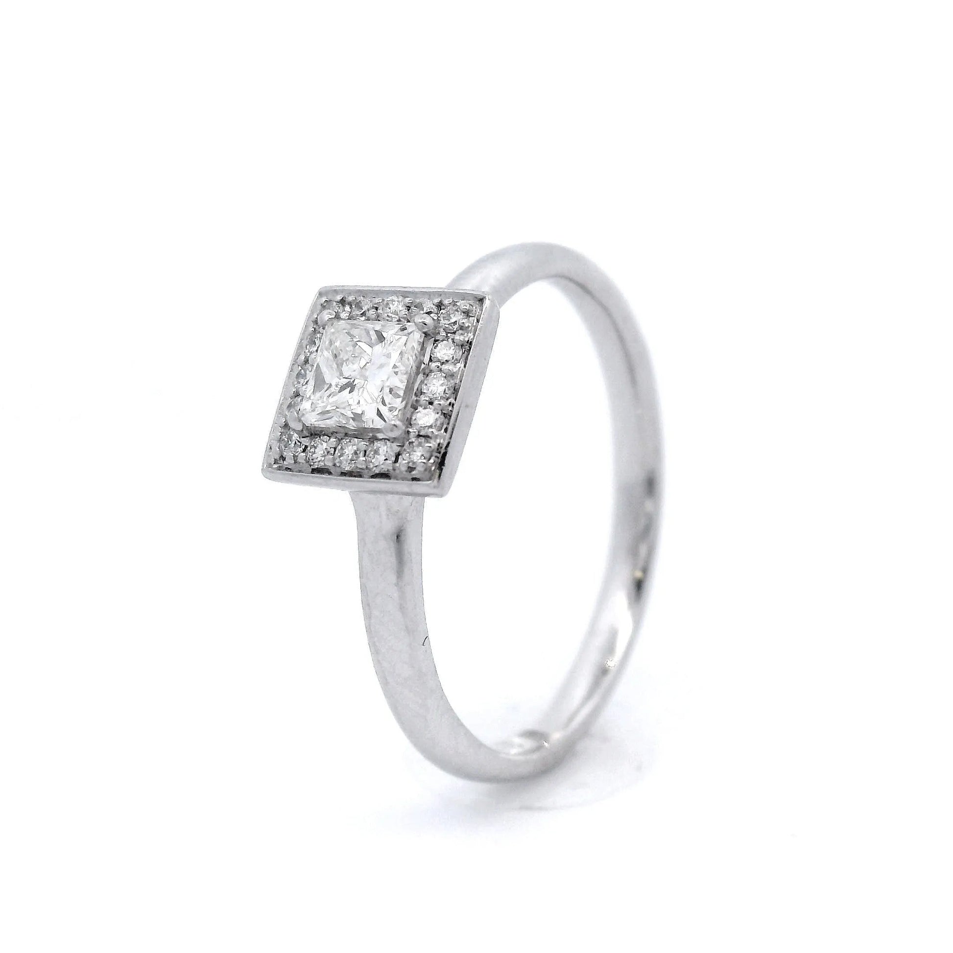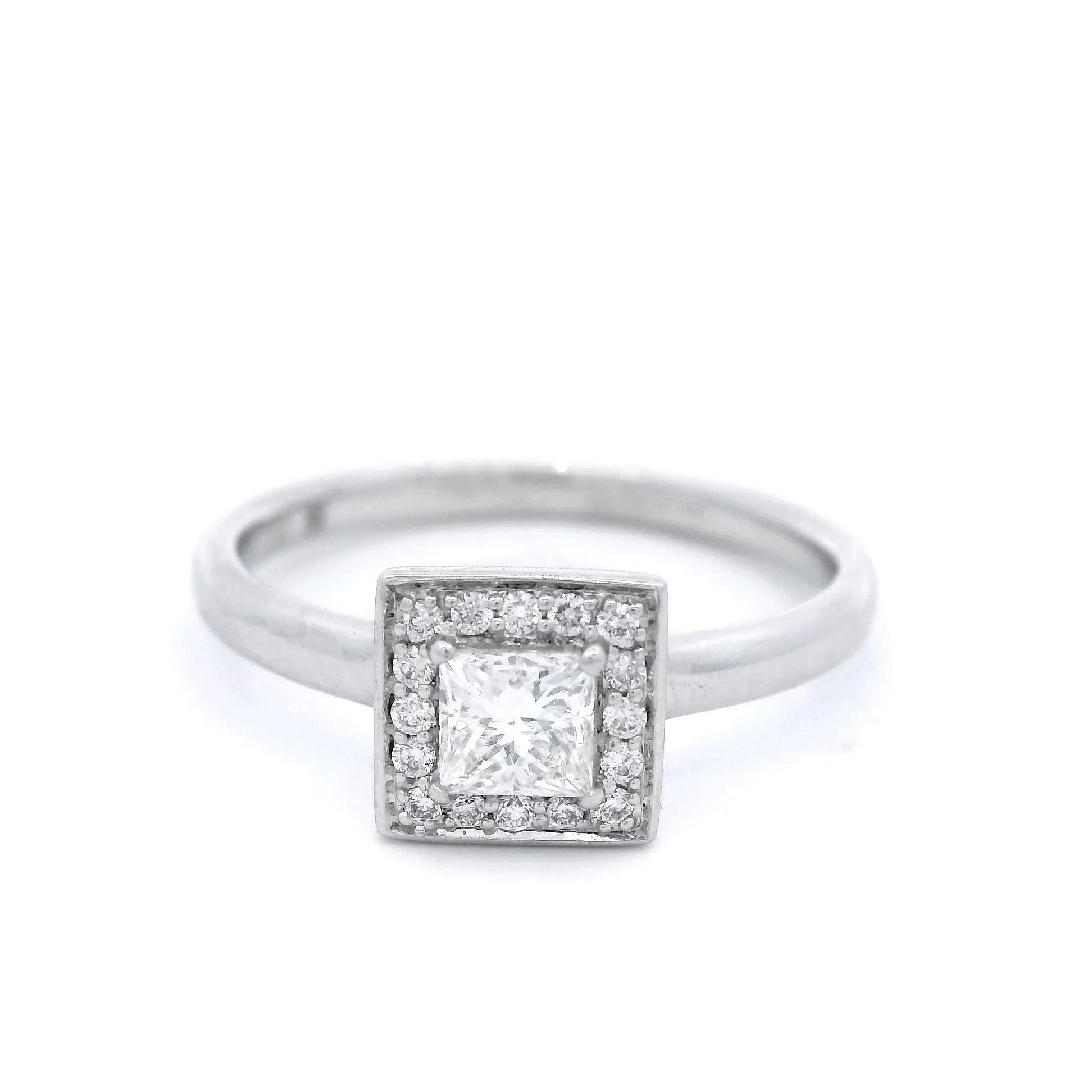 18ct White Gold Diamond Claw/Bead Set Halo Engagement Ring