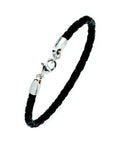 4mm Diameter Braided Leather Necklace with Rhodium Plated Extension Chain