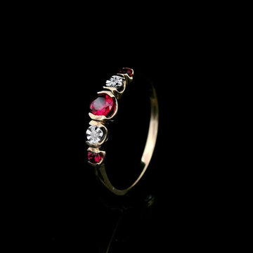 9 Carat Yellow Gold Created Ruby & Diamond Ring